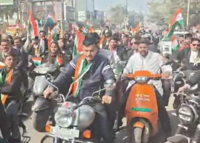 मथुरा। 77वें गणतंत्र दिवस के अवसर पर बार एसोसिएशन मथुरा के अध्यक्ष राघवेंद्र सिंह एडवोकेट और सचिव मनोज कुमार शर्मा एडवोकेट के नेतृत्व में पहली अधिवक्ता एकता बाइक रैली आयोजित की गई। यह रैली अधिवक्ताओं की एकता, भाईचारे और देशभक्ति की भावना को प्रदर्शित करती है। इस बाइक रैली में लगभग 700 अधिवक्ताओं ने भाग लिया, जिनमें अधिकतर युवा अधिवक्ता थे। देशभक्ति के गीत और ‘भारत माता की जय’ के नारे लगाए गए। रैली के माध्यम से समाज में सौहार्द, एकता और अनुशासन का संदेश दिया गया।