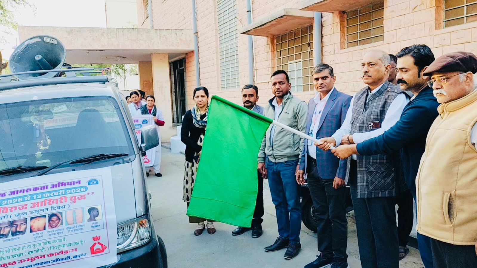 बाड़मेर:- जिले में कुष्ठ रोग के प्रति जन-जागरूकता बढ़ाने एवं समाज में व्याप्त भ्रांतियों को दूर करने के उद्देश्य से स्पर्श कुष्ठ जागरूकता अभियान का जिला स्तर पर शुभारम्भ किया गया। अभियान का शुभारम्भ जीएनएम प्रशिक्षण केंद्र के विद्यार्थियों द्वारा आयोजित जागरूकता रैली के माध्यम से किया गया। रैली को मुख्य चिकित्सा एवं स्वास्थ्य अधिकारी डॉ. विष्णुराम विश्नोई ने हरी झंडी दिखाकर रवाना किया।इस अवसर पर सीएमएचओ डॉ. विष्णुराम विश्नोई ने उपस्थित विद्यार्थियों एवं आमजन को संबोधित करते हुए कहा कि कुष्ठ रोग एक संक्रामक रोग जरूर है, लेकिन यह पूर्णतः उपचार योग्य है। उन्होंने कहा कि समय पर पहचान एवं नियमित उपचार से कुष्ठ रोग से होने वाली विकलांगता को रोका जा सकता है। साथ ही उन्होंने समाज में कुष्ठ रोग को लेकर फैली भ्रांतियों को दूर करने तथा रोगियों के प्रति सकारात्मक दृष्टिकोण अपनाने का आह्वान किया।