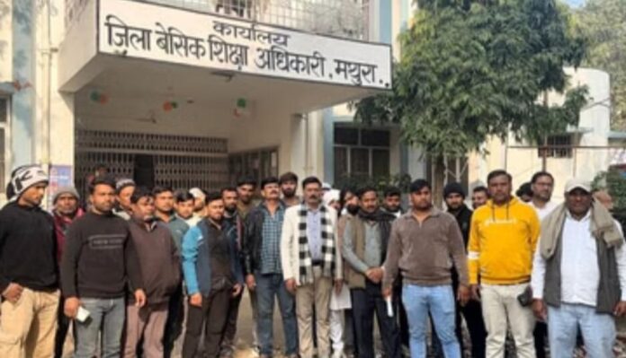 मथुरा। प्राथमिक विद्यालय नौहझील से निलंबित हुए शिक्षक जान मोहम्मद का मामला अब गर्माता जा रहा है। शिक्षक के समर्थन में कस्बे के ग्रामीण और अभिभावकों ने जिला मुख्यालय में विरोध प्रदर्शन किया। प्रदर्शनकारियों का कहना था कि शिक्षक पर बेबुनियाद आरोप लगाए गए हैं। उन्हें बहाल किया जाए। इस संबंध में प्रदर्शनकारियों ने डीएम को ज्ञापन सौंपा है। प्रदर्शनकारियों ने आरोप लगाया है कि शिक्षक जान मोहम्मद को राजनैतिक षडयंत्र के तहत गलत आरोपों में फंसाया गया है। उन्होंने कहा है कि शिक्षक शैक्षिक कार्य के अलावा किसी भी गतिविधि में शामिल नहीं हैं। राजनीतिक प्रतिद्वंतिता के चलते ऐसे लोगों ने शिक्षक की शिकायत की है।