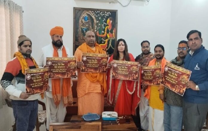 वृंदावन। वृंदावन स्थित रामकृष्ण मिशन हॉस्पिटल के सामने मानव सेवा संघ में यूजीसी के कथित विवादित प्रावधानों के खिलाफ देशभर में उभरते असंतोष के बीच सनातन संगठनों ने निर्णायक संघर्ष का ऐलान कर दिया है। इसी क्रम में सवर्ण समाज समन्वय समिति (S4) के आह्वान पर 8 मार्च 2026 को दिल्ली के रामलीला मैदान में प्रस्तावित UGC रोलबैक महाआंदोलन के कार्ड का विधिवत विमोचन किया गया। इस महाआंदोलन को शंकराचार्य परिषद के अध्यक्ष स्वामी आनंद स्वरूप, रामराज्य मिशन के राष्ट्रीय अध्यक्ष कुँवर राजेंद्र नरुका तथा सनातन धर्म रक्षापीठ के पीठाधीश्वर एवं कथावाचक कौशल किशोर ठाकुर का पूर्ण समर्थन प्राप्त है। शंकराचार्य परिषद के अध्यक्ष स्वामी आनंद स्वरूप ने गर्जनात्मक स्वर में कहा कि यूजीसी के माध्यम से शिक्षा व्यवस्था पर वैचारिक और सांस्कृतिक आघात किया जा रहा है, जो किसी भी परिस्थिति में स्वीकार्य नहीं है।
