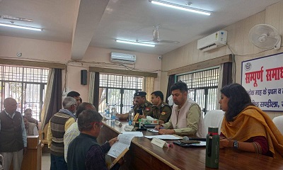 सम्पूर्ण समाधान में पुलिस अधीक्षक अशोक कुमार मीणा ने उपस्थित थानाध्यक्षों को निर्देश दिये आगामी होली पर्व एवं अन्य त्यौहारों को ध्यान में रखतें हुए सर्तक रहें और क्षेत्र में अफवाह एवं आराजकता फैलाने वालों को पहले से चिन्हि कर, चेतावनी दें त्यौहार पर किसी प्रकार अफवाह एवं आराजकता फैलाने की कोशिश की तो कठोर कार्यवाही की जायेगी तथा रात्रि गस्त बढ़ायें और क्षेत्र की हर जानकारी के लिए बीट सिपाही एवं चौकीदारों से प्रत्येक दिन जानकारी लेें और अवैध भूमि कब्जा मुक्त कराने में राजस्व टीम का सहयोग करें। इसके उपरान्त जिलाधिकारी ने तहसील कार्यालयों का निरीक्षण किया तथा संबंधित पटल अभिलेखागारों को निर्देश दिये कि सभी व्यवस्थाये दो दिन में सुधार लें। इस अवसर पर मुख्य चिकित्सा अधिकारी डा0 भावनाथ पाण्डे, उप जिलाधिकारी नारायणी भाटिया, पीडी, जिला विकास अधिकारी, जिला कृषि अधिकारी सहित अन्य सभी जिला स्तरीय अधिकारी, बीडीओ, सीडीपीओ, सीओ व थानाध्यक्ष आदि उपस्थित रहें।