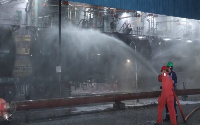 मथुरा। मथुरा रिफाइनरी अपने अधिकारियों, कर्मचारियों और संविदा कर्मियों, प्लांट और रिफाइनरी परिधि मे आने वाले सभी गांवों की सुरक्षा के प्रति हमेशा सजग रहती है। रिफाइनरी में संभावित खतरों से निपटने के लिए समय- समय पर आपातकालीन पूर्वाभ्यास किए जाते हैं। इसी परिप्रेक्ष्य में दिनांक 23.02.2026 को ऑन साइट कम ऑफ साइट डिजास्टर पूर्वाभ्यास किया गया, जो प्रोपिलीन गैस के रिसाव से उत्पन्न आग से संबन्धित था। गैस रिसाव और आग लगाने के परिदृश्य में रिफाइनरी व आस पास के ग्रामों पर इसके प्रभाव को ध्यान में रखते हुए ड्रिल को आयोजित किया गया।