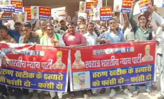 उन्होंने यह भी कहा कि न तो दिल्ली सरकार का कोई प्रतिनिधि और न ही मुख्यमंत्री अब तक पीड़ित परिवार से मिलने पहुंचे हैं, जिससे समाज में रोष व्याप्त है। इन मांगों में पीड़ित परिवार को दो करोड़ रुपये का मुआवजा देने, परिवार के एक सदस्य को सरकारी नौकरी देने तथा आरोपियों को जल्द से जल्द गिरफ्तार कर फांसी की सजा दिलाने की मांग शामिल है। पार्टी पदाधिकारियों ने चेतावनी दी कि यदि सरकार ने जल्द ही इस मामले में ठोस कदम नहीं उठाए, तो खटीक समाज पूरे देश में एकजुट होकर दिल्ली के जंतर-मंतर पर बड़ा आंदोलन करेगा। प्रदर्शन के दौरान बड़ी संख्या में कार्यकर्ता मौजूद रहे और सरकार से न्याय की मांग करते रहे।