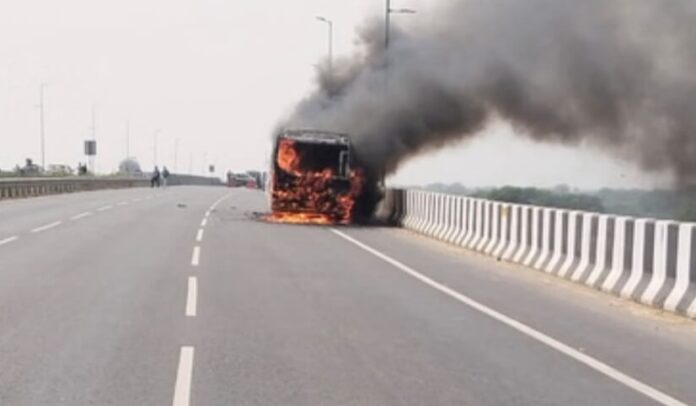 मथुरा। रिफाइनरी के समीप बरेली हाईवे पर उस समय बड़ा हादसा टल गया, जब सीबीएसई परीक्षा देकर लौट रहे छात्रों से भरी एक स्कूल बस में लपटें उठने लगीं। इसी दरम्यान बस के पीछे चल रहे एक दरोगा ने बस को रुकवाने के बाद सवार 38 छात्रों को आनन-फानन में बाहर निकला। इसके बाद कुछ ही देर में पूरी बस में आग फैल गई और जलकर नष्ट हो गई। फायर कर्मियों ने आग पर काबू पाया। बलदेव पब्लिक स्कूल की की बस से मथुरा से इंटरमीडिएट के 38 छात्र-छात्राओं को परीक्षा देकर लौट रहे थे। रिफाइनरी क्षेत्र पार करने के बाद गांव के पास चलते समय बस के पिछले हिस्से से अचानक धुआं उठने लगा। कुछ ही पलों में आग ने लपटें उठने लगीं।
