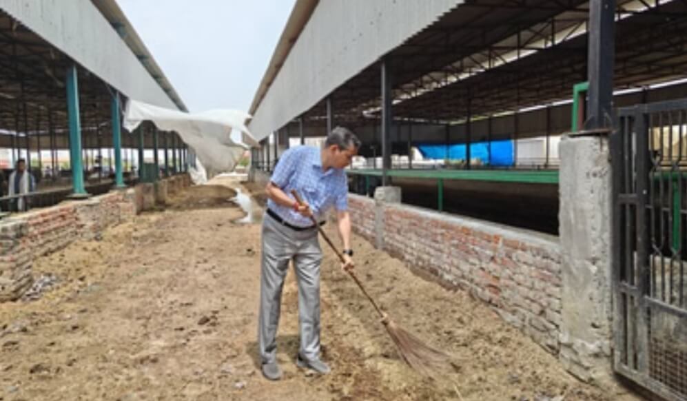 मथुरा। जिलाधिकारी चंद्र प्रकाश सिंह ने रामनवमी पर राल स्थित ब्रह्मऋषि देवरहा बाबा गो-आश्रय स्थल का निरीक्षण करने के बाद झाड़ू लगाई। साफ-सफाई के बाद गो पूजन करके गोवंश को हरा चारा खिलाया। डीएम ने गोशाला परिसर में स्थित गोधाम गुरुकुल (स्कूल) के बच्चों को रामनवमी पर मिष्ठान्न वितरण किया। बच्चों द्वारा बनाए गए विभिन्न शिल्प/ हस्तकला का अवलोकन किया। उन्होंने बच्चों से पढ़ाई एवं भोजन के बारे में भी जानकारी ली। इसके पहले डीएम और एडीएम डॉ. पंकज कुमार वर्मा ने गोशाला में साफ सफाई करवाई।
