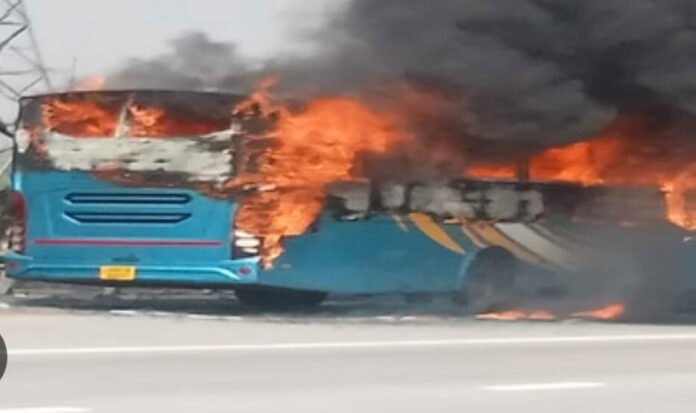 मची चीख-पुकार : यमुना एक्सप्रेसवे पर चलती बस में लगी आग