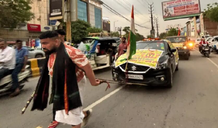 वृंदावन। वृंदावन में संत प्रेमानंद महाराज से मिलने की चाहत में आगरा के गौरव चाहर ने अपनी श्रद्धा का प्रदर्शन करते हुए एक असाधारण पदयात्रा पूरी की। पहलवान गौरव चाहर 2 अप्रैल को सुबह 9:30 बजे अपने गांव अकोला से कमर से रस्सी बांधकर एक कार और एक थार गाड़ियों को खींचते हुए पैदल वृंदावन पहुंचे। करीब 90 किलोमीटर की दूरी तय कर वृंदावन पहुंचे गौरव का जोरदार स्वागत किया गया। अकोला चाहरवाटी निवासी गौरव चाहर ने तपती धूप और शारीरिक चुनौतियों का सामना करते हुए यह साहसिक यात्रा पूरी की।