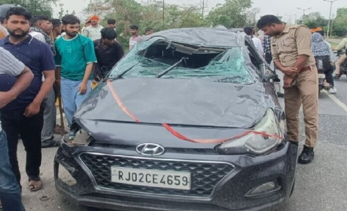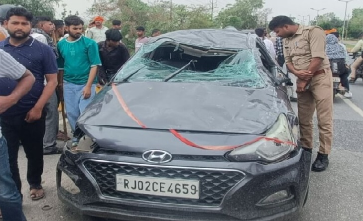 2 युवक घायल: गोवर्धन क्षेत्र में बाइक को बचाने में कई बार पलटी कार