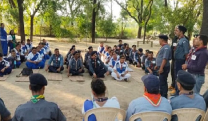 गोकुल में स्काउट-गाइड को दिया जा रहा है प्रशिक्षण