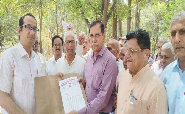 8 वें पे कमीशन से सभी लाभ की खातिर सेवा निवृत्त कार्मिकों ने एसोसिएशन के बैनर तले दिया धरना