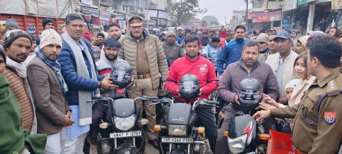 बेटी के जन्मदिन पर भाजपा किसान मोर्चा के क्षेत्रीय मंत्री ने दोपहिया वाहन समारोह को बांटे निशुल्क हेलमेट