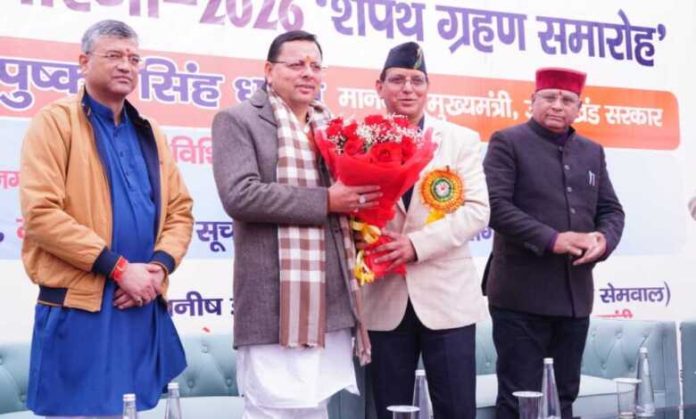 उत्तरांचल प्रेस क्लब के नवनिर्वाचित अध्यक्ष श्री अजय सिंह राणा ने कहा कि मुख्यमंत्री पुष्कर सिंह धामी हमेशा पत्रकारों के कल्याण के लिए तत्पर रहते हैं। उन्होंने कहा पत्रकार, पत्रकारिता के साथ अन्य क्षेत्रों में भी महत्वपूर्ण भूमिका निभा रहे हैं। उन्होंने उत्तरांचल प्रेस क्लब के भवन निर्माण को लेकर कैबिनेट में हुए फैसले के लिए मुख्यमंत्री का आभार व्यक्त किया। मुख्यमंत्री ने नवनिर्वाचित अध्यक्ष अजय सिंह राणा, वरिष्ठ उपाध्यक्ष गजेन्द्र सिंह नेगी, कनिष्ठ उपाध्यक्ष सोबन सिंह गुसाई, महामंत्री योगेश सेमवाल, संयुक्त मंत्री शिवेश शर्मा, मीना नेगी, कोषाध्यक्ष मनीष डंगवाल, सम्प्रेक्षक विजय जोशी एवं कार्यकारिणी सदस्य वीरेन्द्र डंगवाल ‘पार्थ’, मनमोहन लखेड़ा, श्रीमती रश्मि खत्री, सुलोचना पयाल, मनोज सिंह जयाड़ा, हरीश थपलियाल, मनबर सिंह रावत, ओम प्रकाश जोशी, हिमांशु जोशी को पद एवं गोपनीयता की शपथ दिलवाई। इस अवसर पर विधायक खजान दास, मेयर सौरभ थपलियाल, दायित्वधारी डॉ. देवेंद्र भसीन, महानिदेशक सूचना श्री बंशीधर तिवारी, एवं अन्य लोग मौजूद रहे।